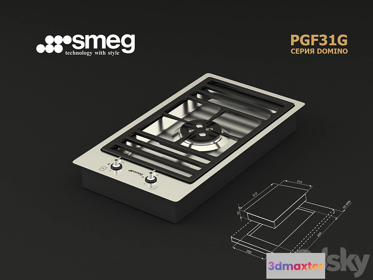 3D Models / Kitchen / Kitchen Appliance / Smeg PGF31G 3D Max