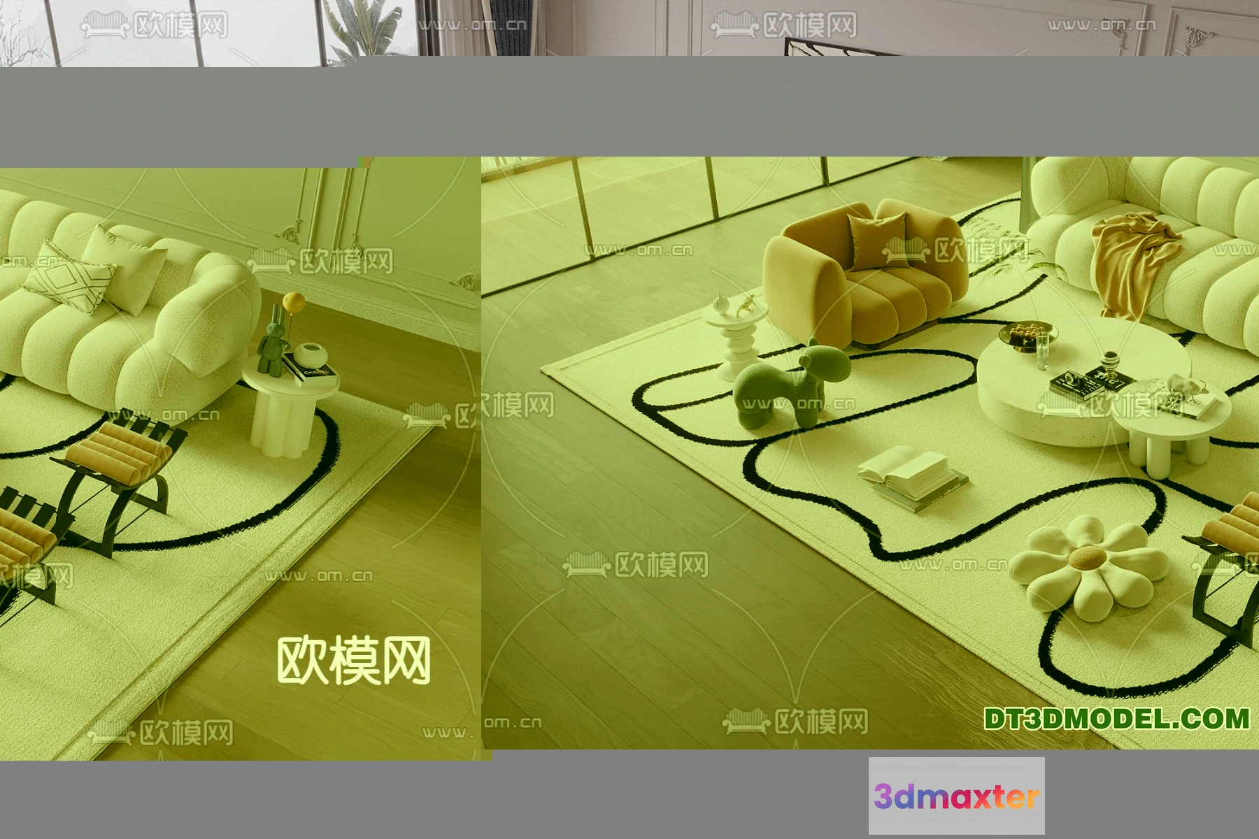3D Models / Furniture / Sofa / Sofa 3D Model with Cream Color – Furniture 3DS Max – 034 3D Max