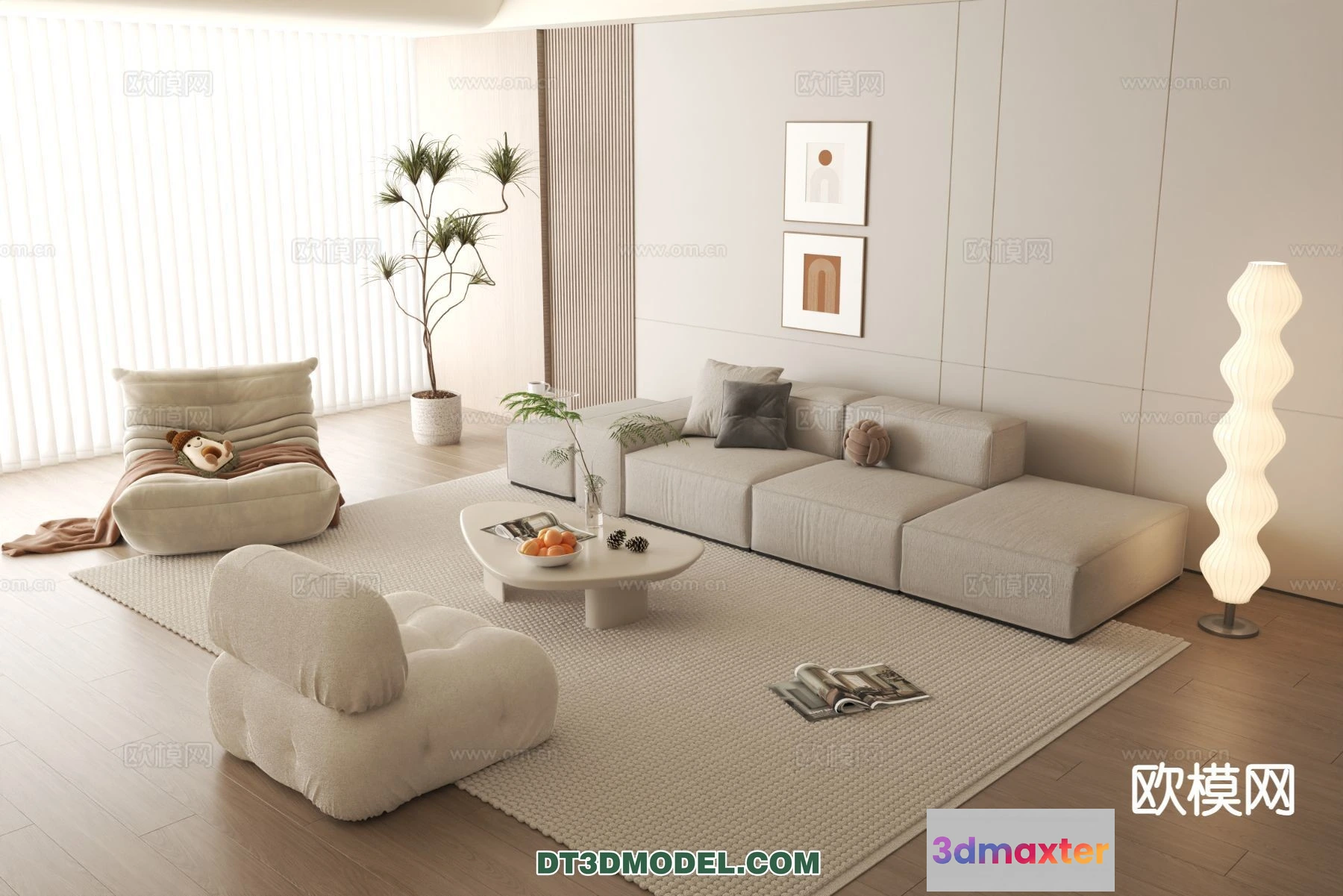 3D Models / Furniture / Sofa / Sofa 3D Model with Cream Color – Furniture 3DS Max – 114 3D Max