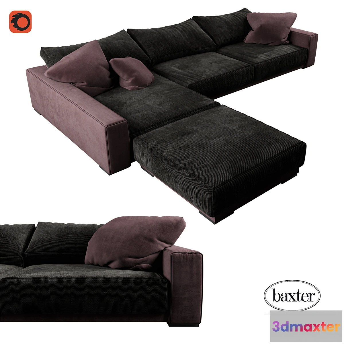Sofa BAXTER BUDAPEST SOFT ANGLE Units: Millimeters Dimension: 4233.55 x 3283.38 x 893.85 Polys: 388 889 Render: Corona Formats: 3Ds Max 2014 OBJ