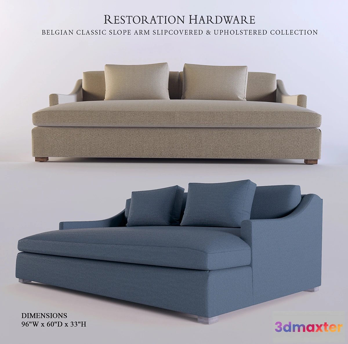 Model elongated sofa RH BELGIAN CLASSIC SLOPE ARM in textile upholstery Dimensions: 96 “W x 60” D x 33 “H cm 244h152h84 The archive max 2012 + FBX + texture + preview
