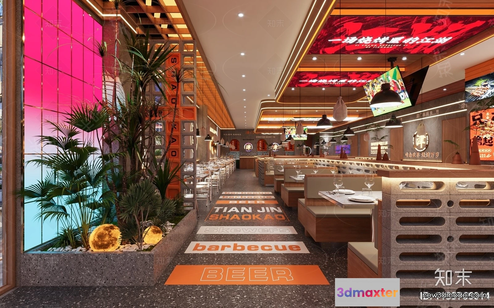 3D Models / 3D Scenes / Interior / Commercial Spaces / Southeast Asia Restaurant 3D Scenes – 3D Blocks – 005 3D Max