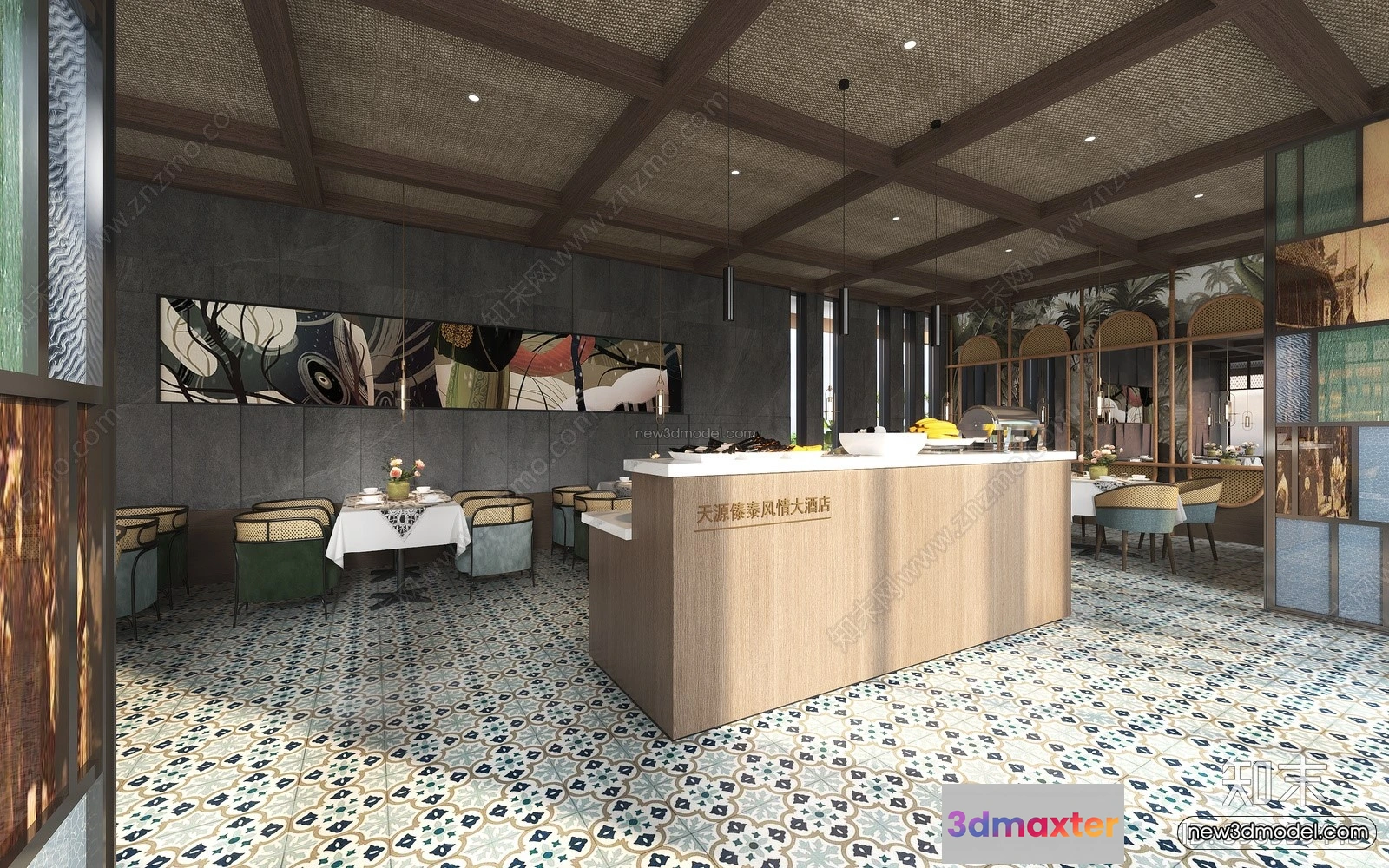 Southeast Asia Restaurant 3D Scenes – 3D Blocks – 012 – Restaurant 3D Model – VRAY