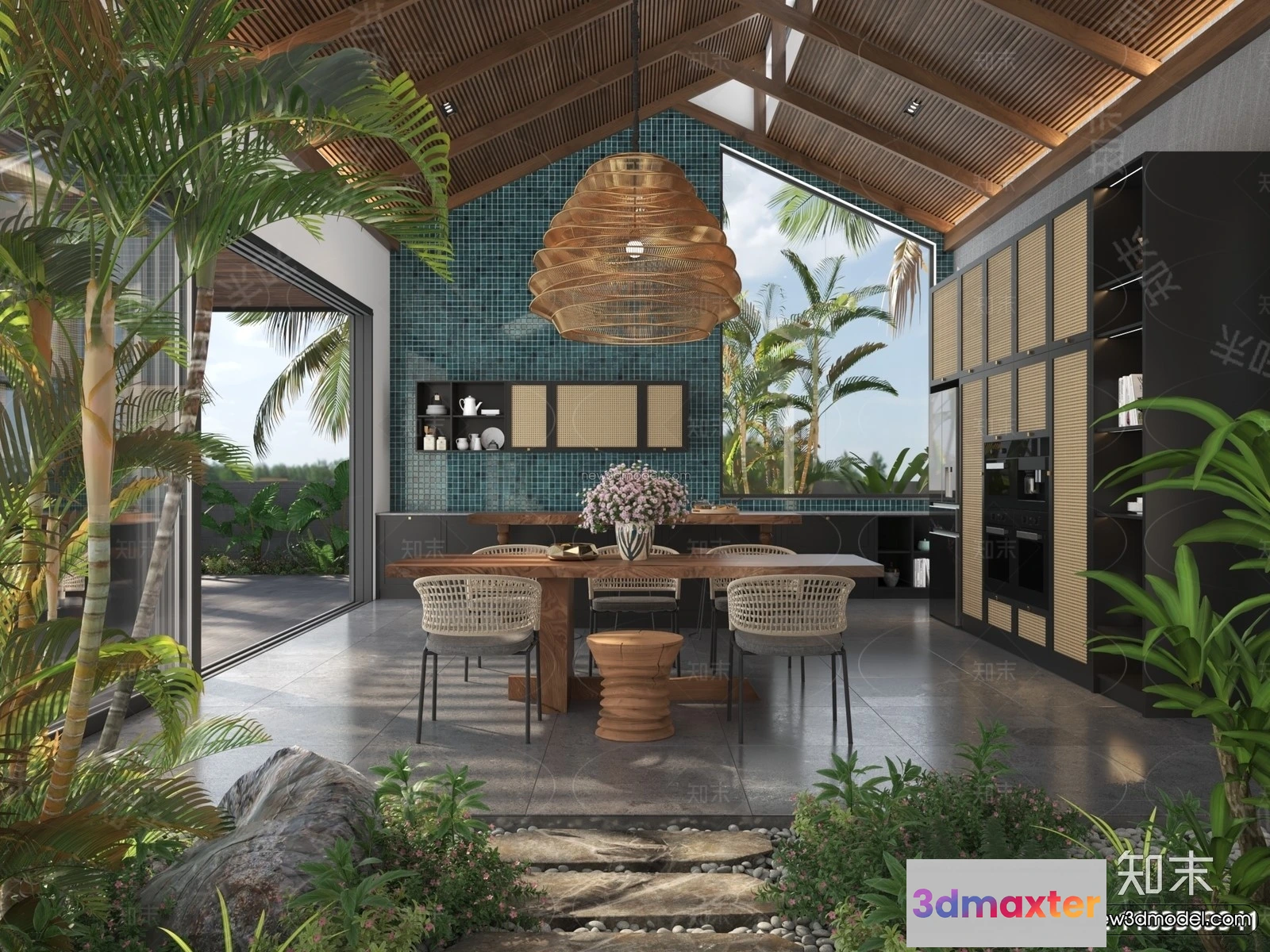 3D Models / 3D Scenes / Interior / Commercial Spaces / Southeast Asia Restaurant 3D Scenes – 3D Blocks – 051 3D Max