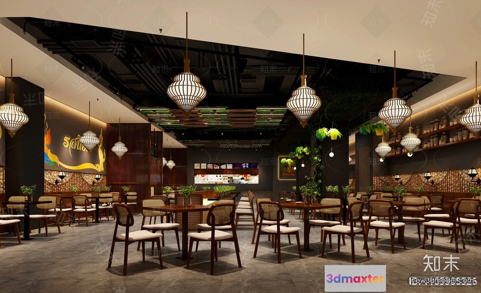 3D Models / 3D Scenes / Interior / Commercial Spaces / Southeast Asia Restaurant 3D Scenes – 3D Blocks – 052 3D Max