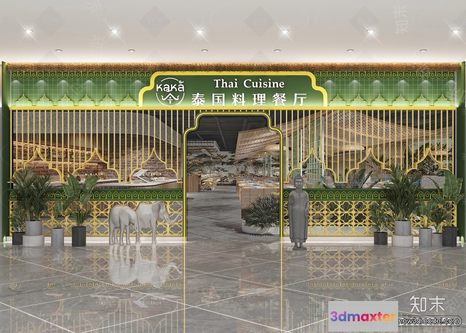 3D Models / 3D Scenes / Interior / Commercial Spaces / Southeast Asia Restaurant 3D Scenes – 3D Blocks – 066 3D Max