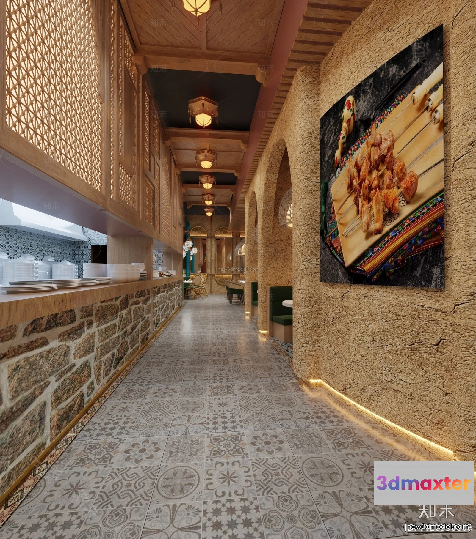3D Models / 3D Scenes / Interior / Commercial Spaces / Southeast Asia Restaurant 3D Scenes – 3D Blocks – 073 3D Max
