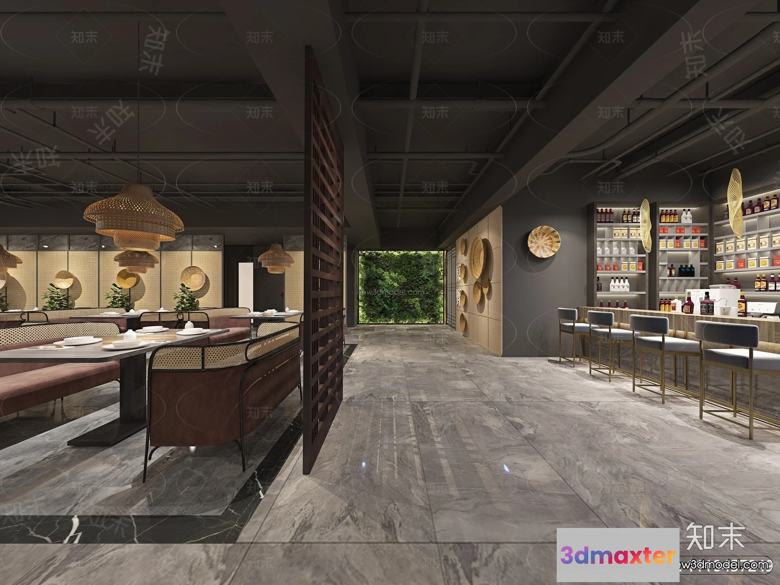 3D Models / 3D Scenes / Interior / Commercial Spaces / Southeast Asia Restaurant 3D Scenes – 3D Blocks – 079 3D Max