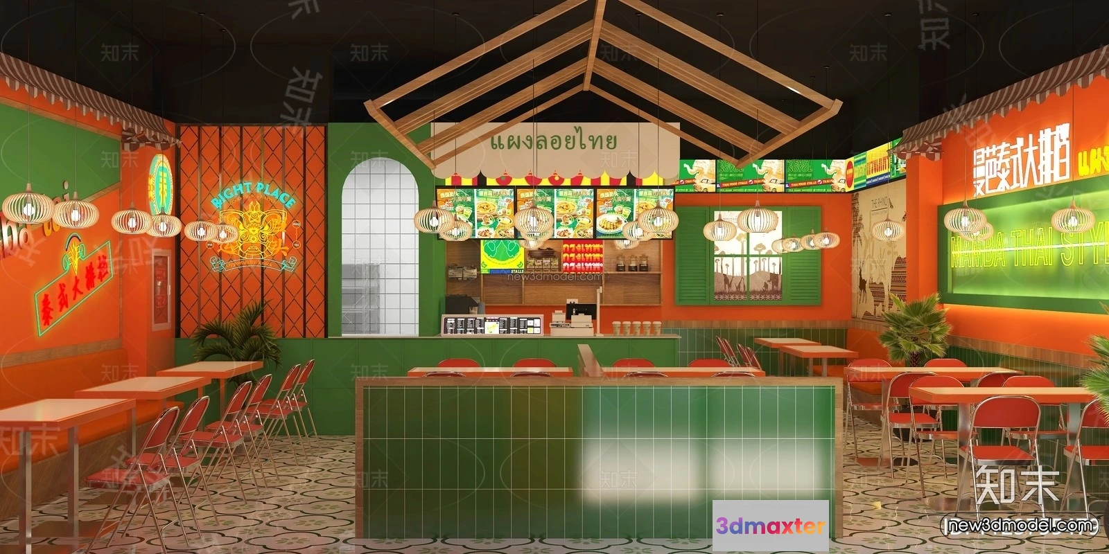 Southeast Asia Restaurant 3D Scenes – 3D Blocks – 086 – Restaurant 3D Model – VRAY