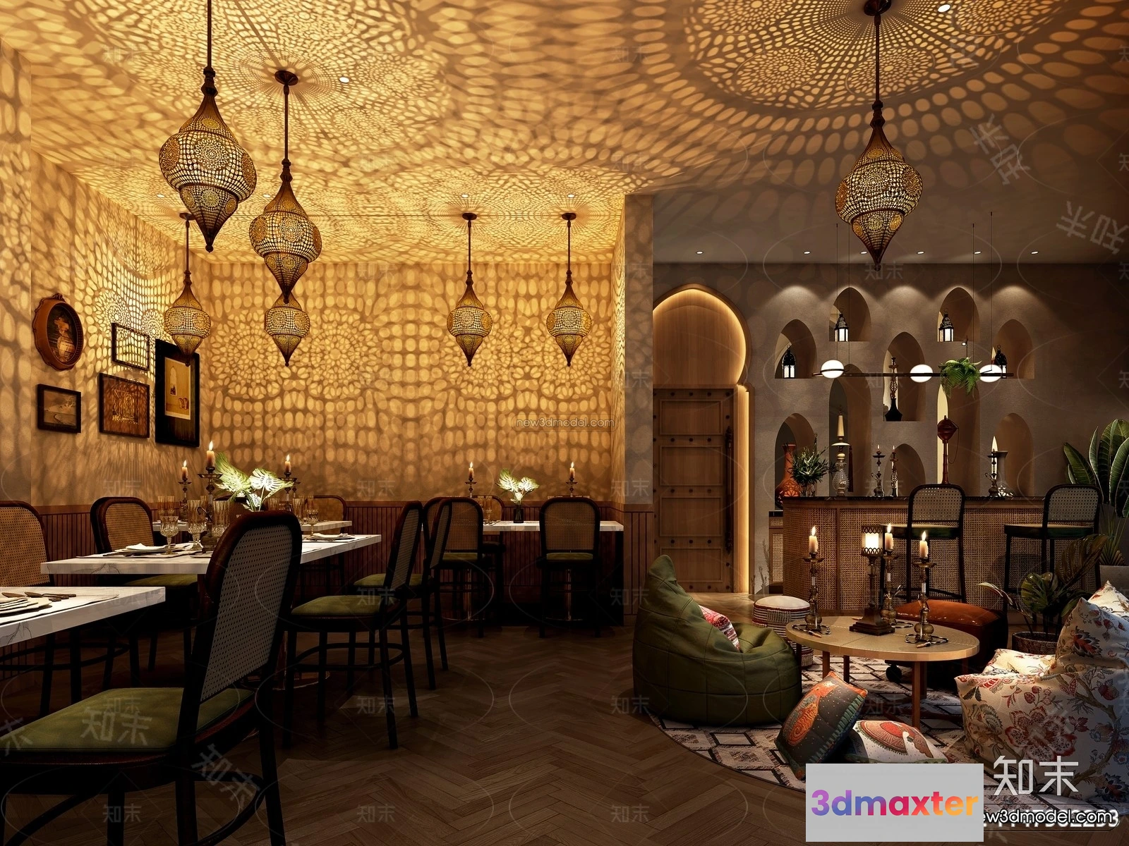3D Models / 3D Scenes / Interior / Commercial Spaces / Southeast Asia Restaurant 3D Scenes – 3D Blocks – 105 3D Max