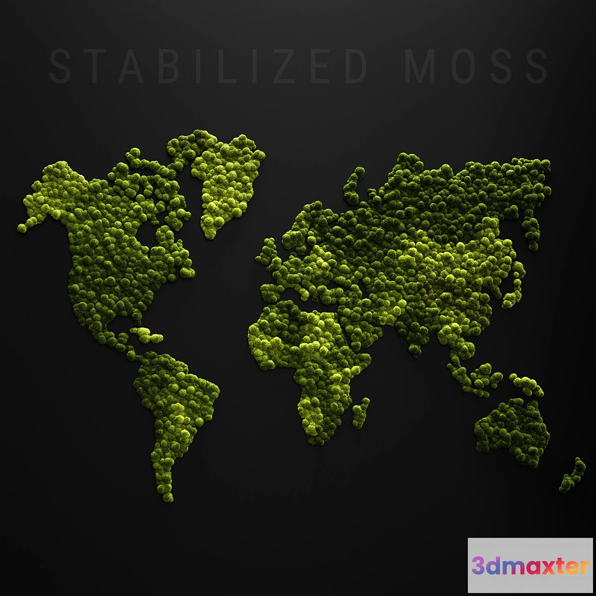 Stabilized moss stylized as a world map.