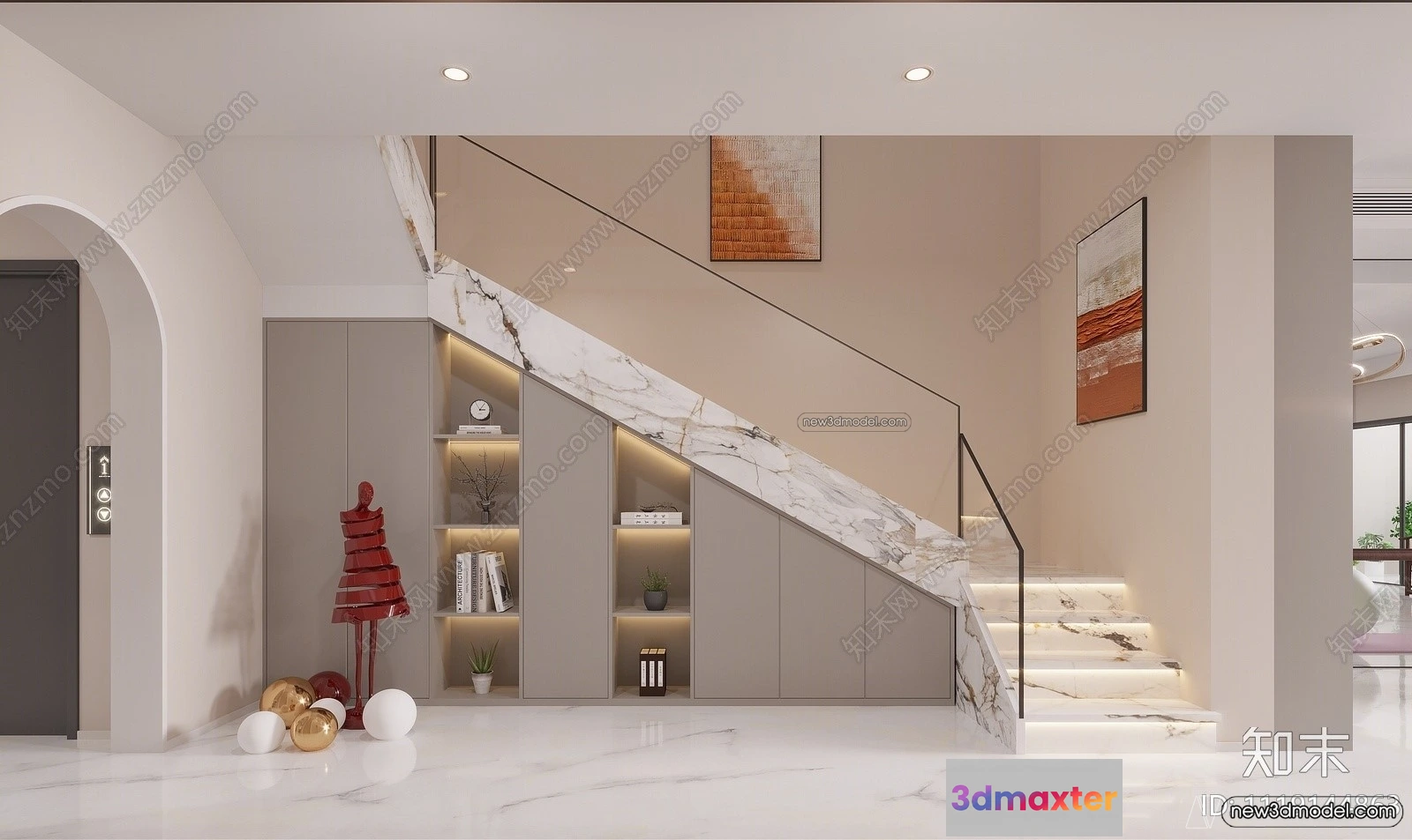 3D Models / 3D Scenes / Interior / Commercial Spaces / Staircase Decoration – 3D Interior Scene – 3D Models – 053 3D Max