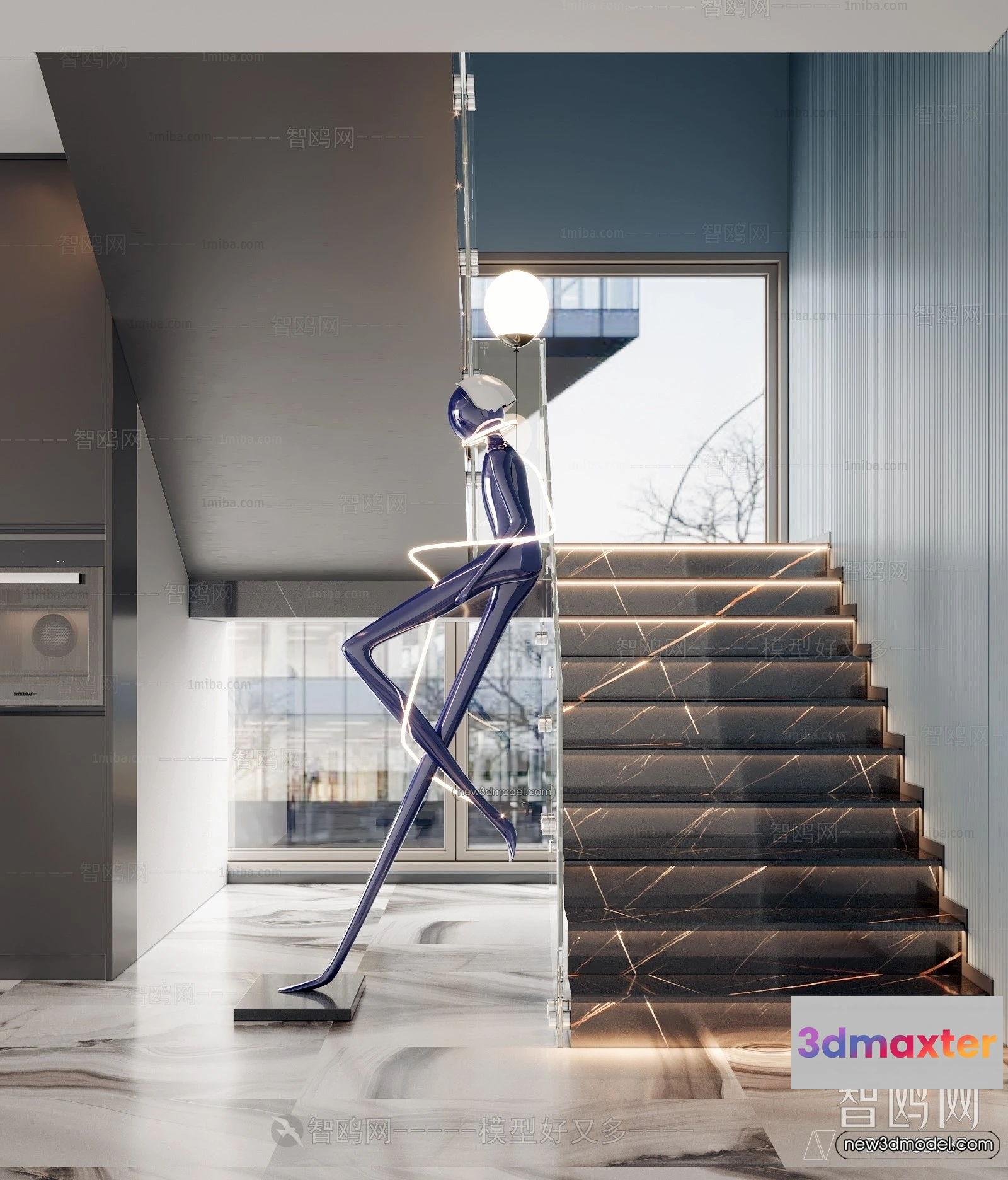 3D Models / 3D Scenes / Interior / Commercial Spaces / Staircase Decoration – 3D Interior Scene – 3D Models – 114 3D Max