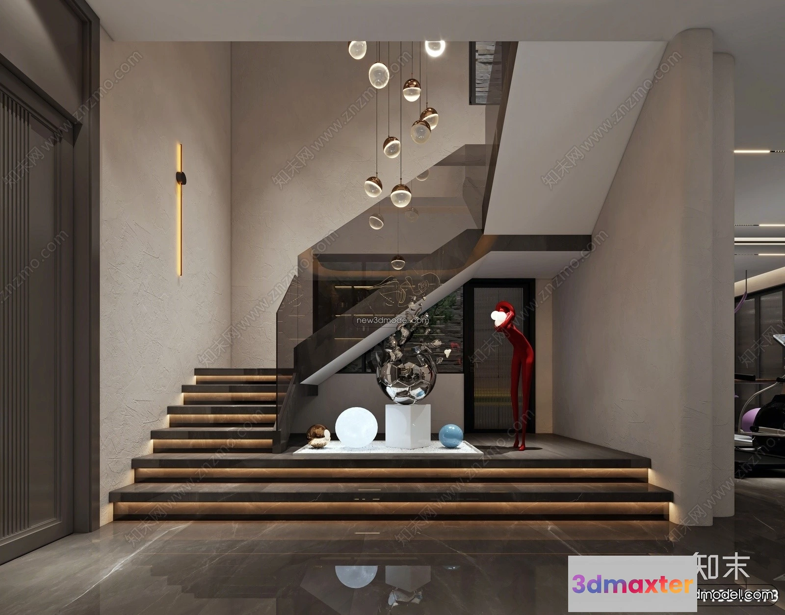 3D Models / 3D Scenes / Interior / Commercial Spaces / Staircase Decoration – 3D Interior Scene – 3D Models – 124 3D Max