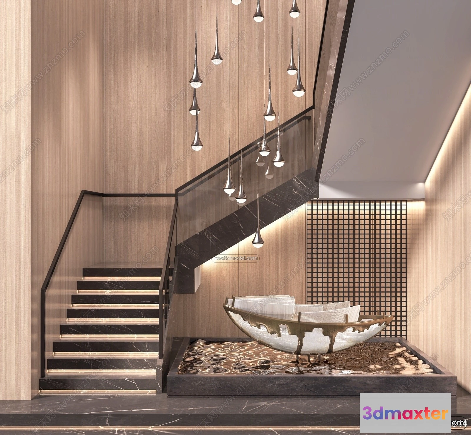 3D Models / 3D Scenes / Interior / Commercial Spaces / Staircase Decoration – 3D Interior Scene – 3D Models – 151 3D Max