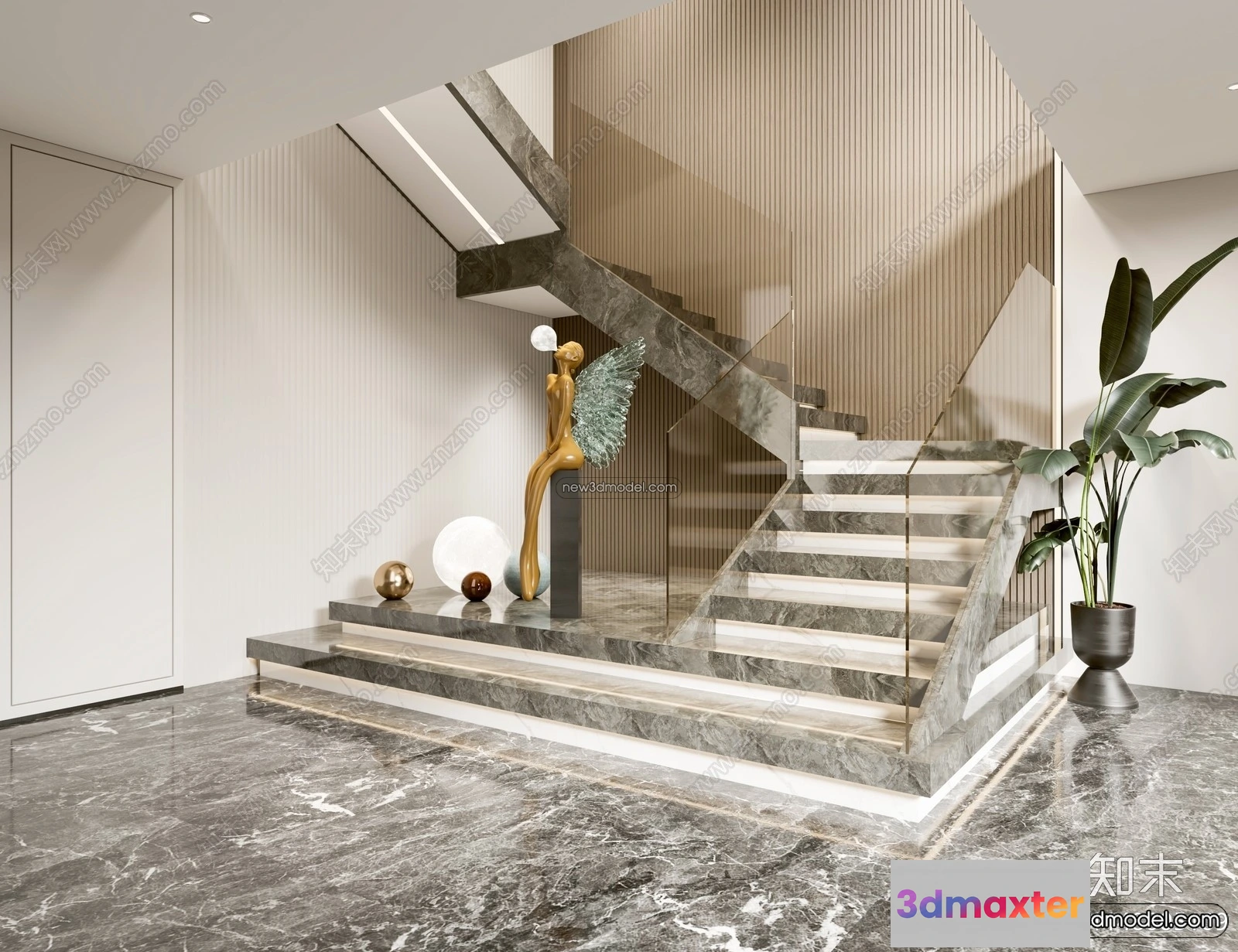 3D Models / 3D Scenes / Interior / Commercial Spaces / Staircase Decoration – 3D Interior Scene – 3D Models – 177 3D Max