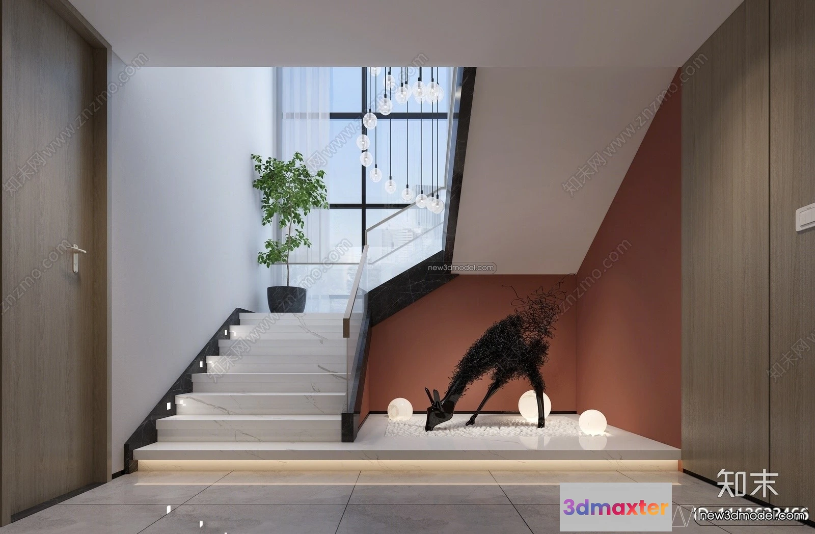 3D Models / 3D Scenes / Interior / Commercial Spaces / Staircase Decoration – 3D Interior Scene – 3D Models – 190 3D Max