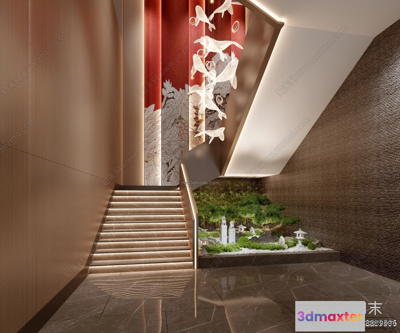 3D Models / 3D Scenes / Interior / Commercial Spaces / Staircase Decoration – 3D Interior Scene – 3D Models – 200 3D Max