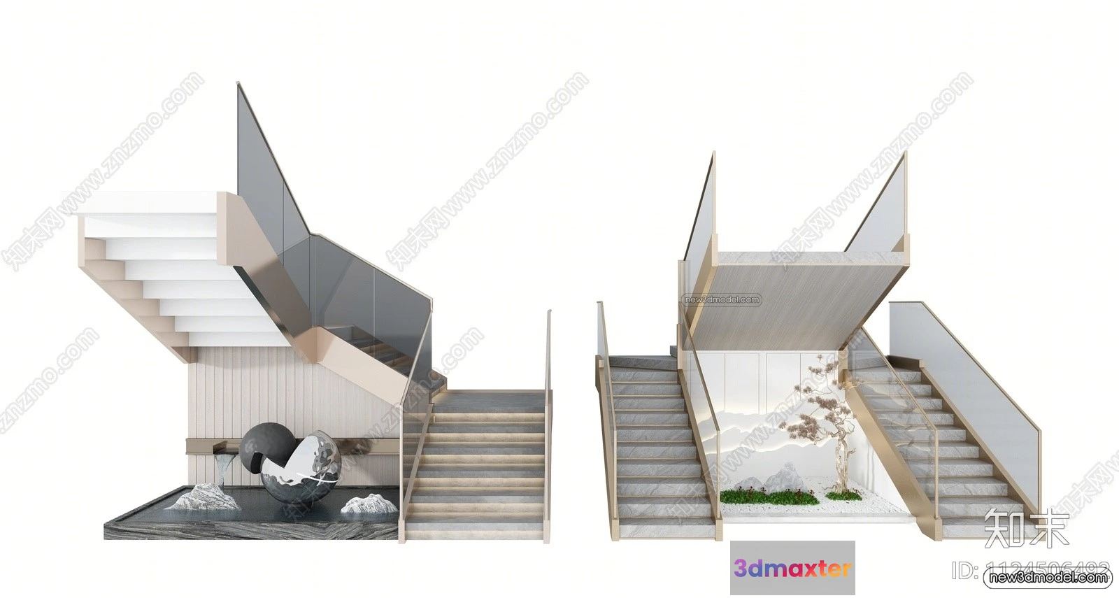 3D Models / 3D Scenes / Interior / Commercial Spaces / Staircase Decoration – 3D Interior Scene – 3D Models – 214 3D Max
