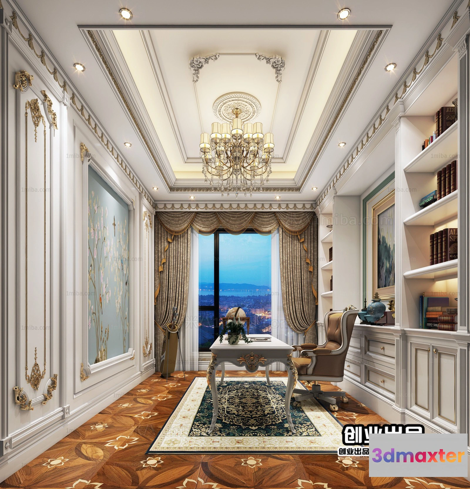 3D Models / 3D Scenes / Interior / Office Home / Study 3D Interior Scene Model – European Style – 001 3D Max