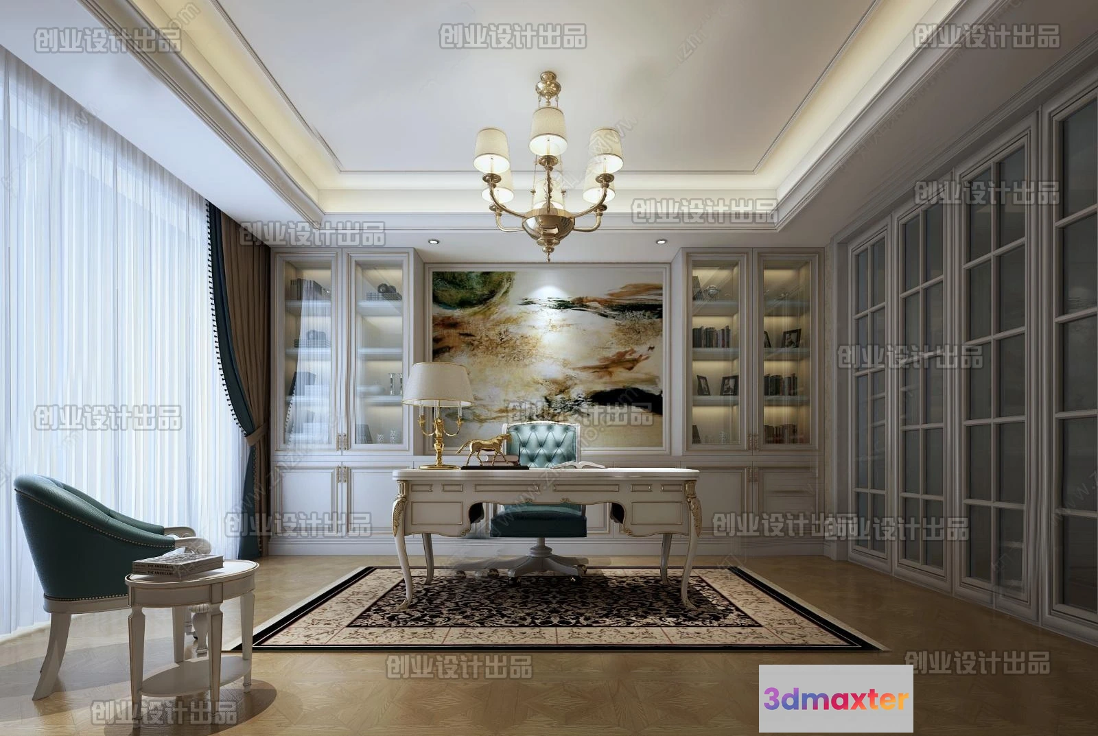 3D Models / 3D Scenes / Interior / Office Home / Study 3D Interior Scene Model – European Style – 015 3D Max
