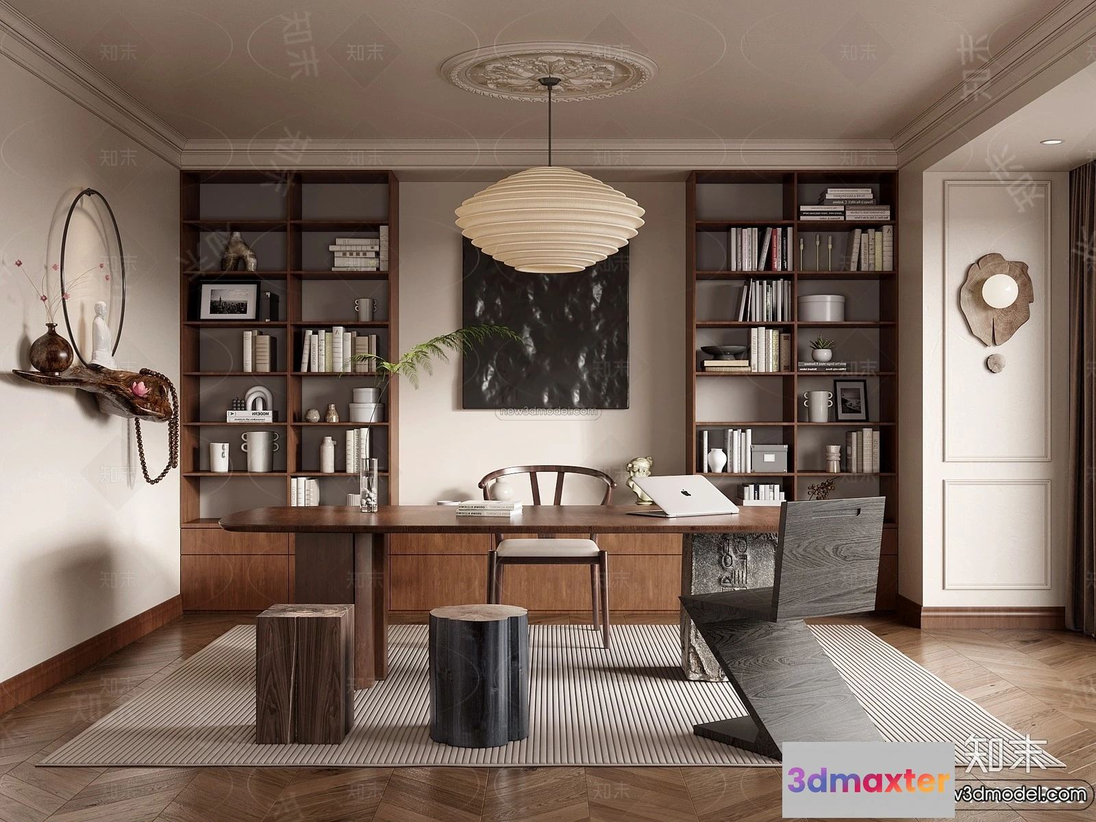 3D Models / 3D Scenes / Interior / Office Home / Study And Work Space – 3D Interior Scene – French Style – 003 3D Max