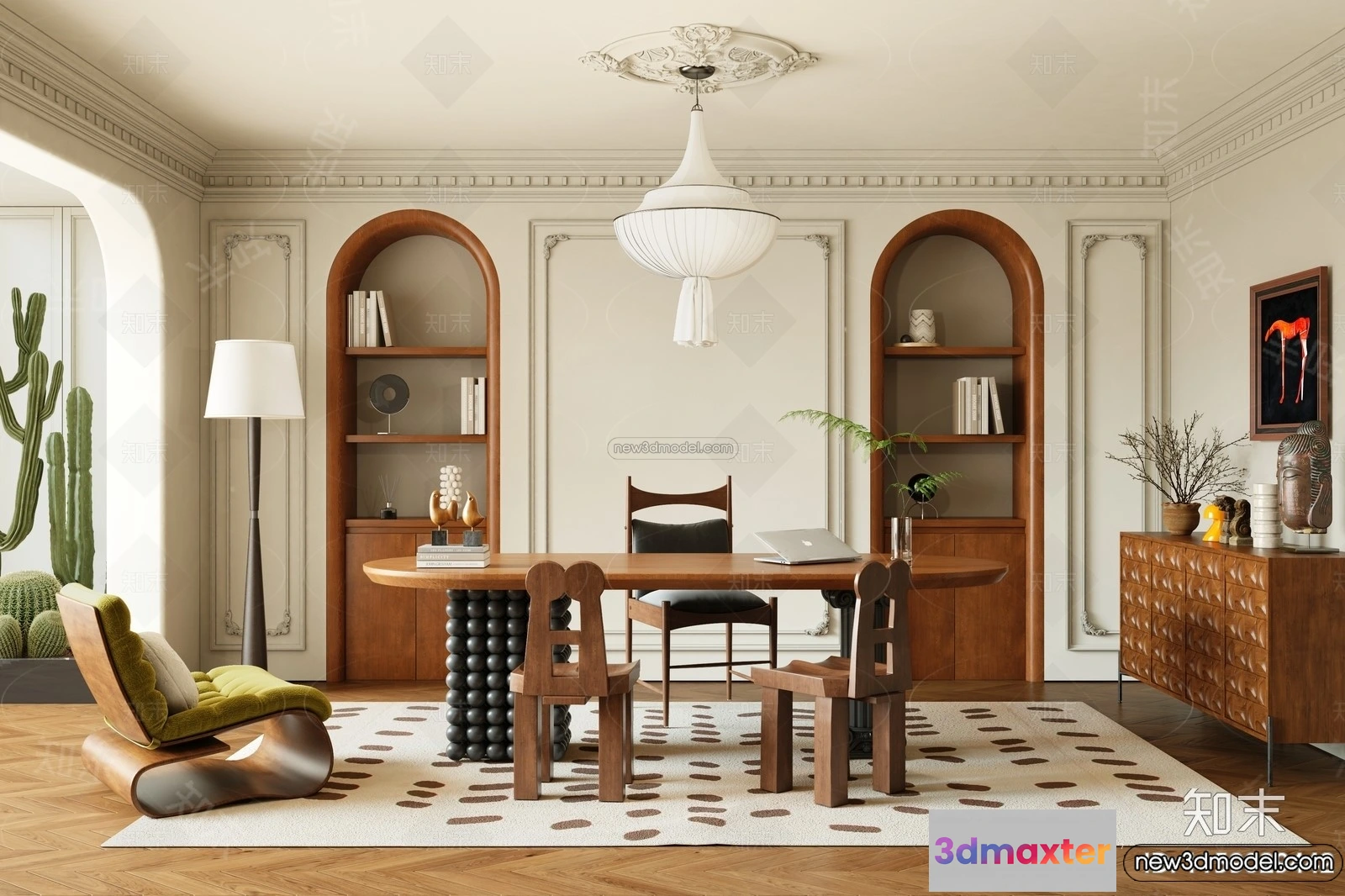 3D Models / 3D Scenes / Interior / Office Home / Study And Work Space – 3D Interior Scene – French Style – 006 3D Max