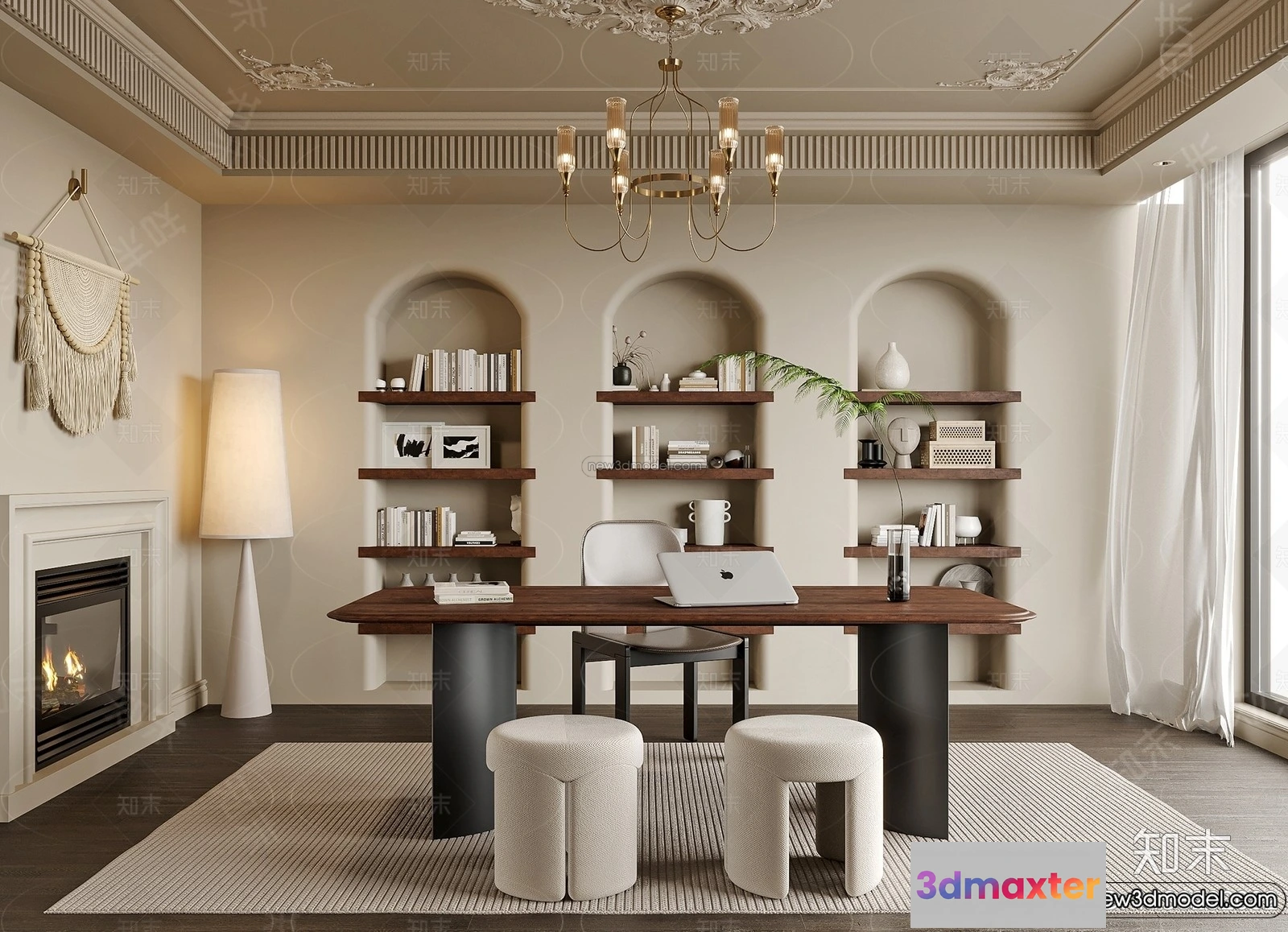 3D Models / 3D Scenes / Interior / Office Home / Study And Work Space – 3D Interior Scene – French Style – 013 3D Max