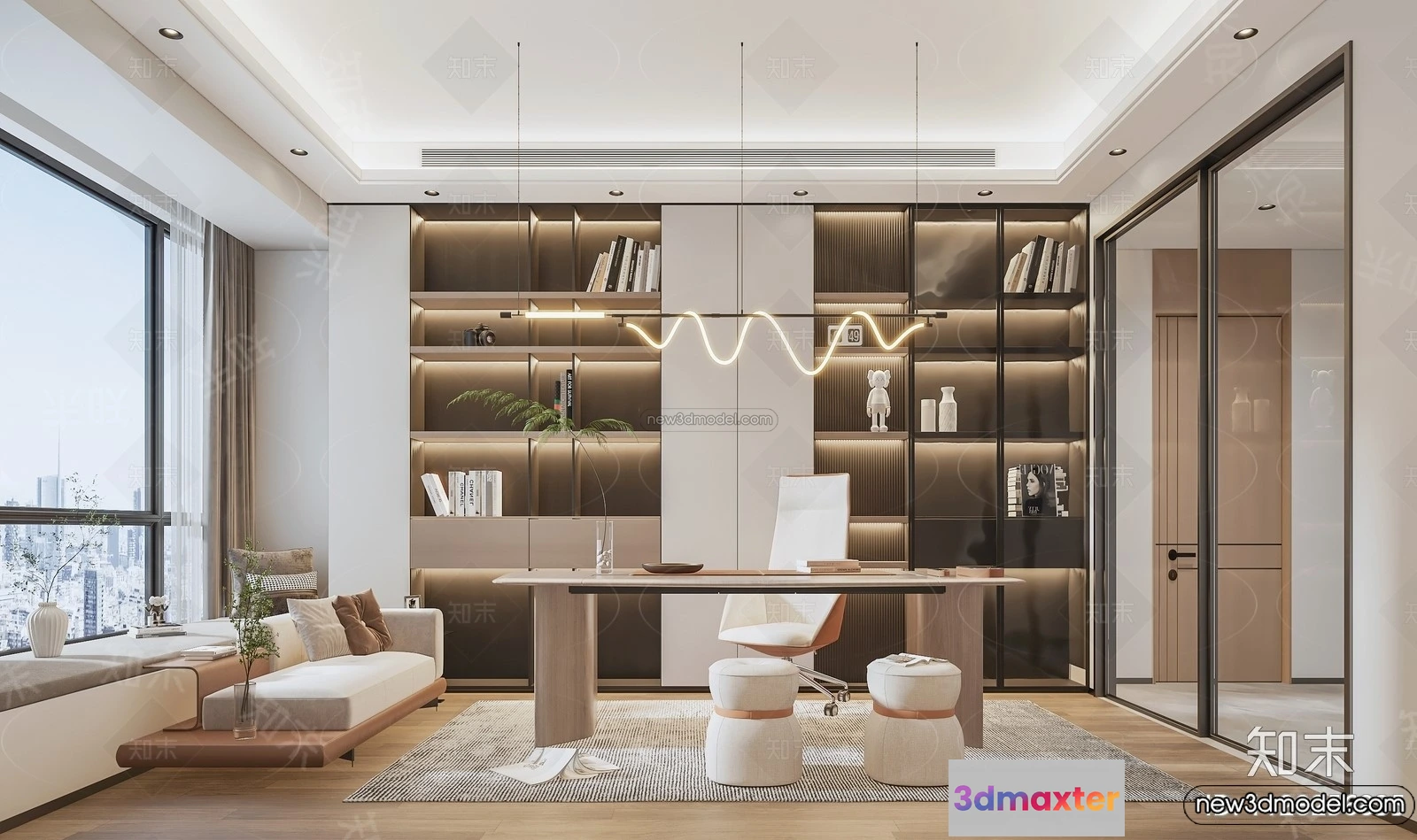 - Name: Study and Work Space – 3D Interior Scene – Italian Style – 001