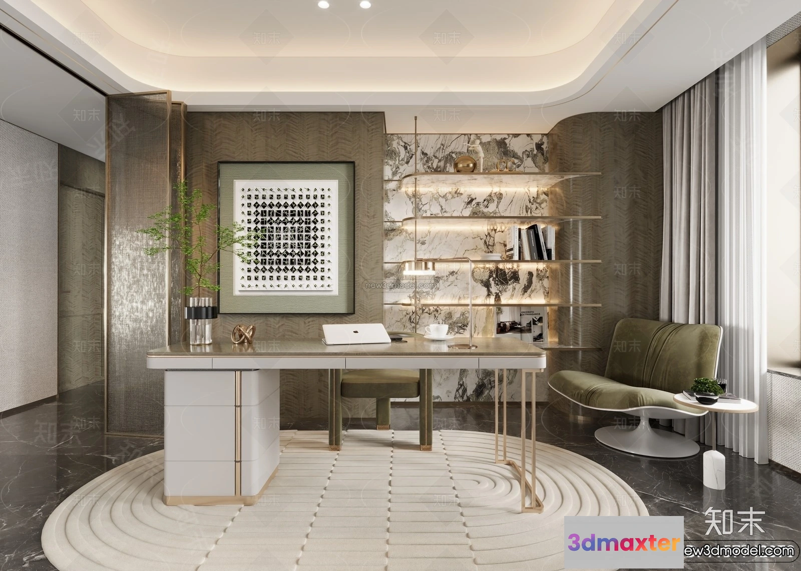 3D Models / 3D Scenes / Interior / Office Home / Study and Work Space – 3D Interior Scene – Italian Style – 004 3D Max