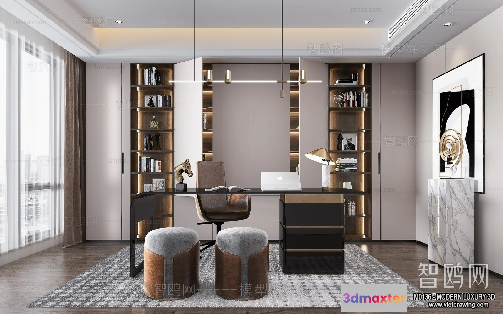 3D Models / 3D Scenes / Interior / Office Home / Study and Work Space – 3D Interior Scene – Luxury Style – 008 3D Max