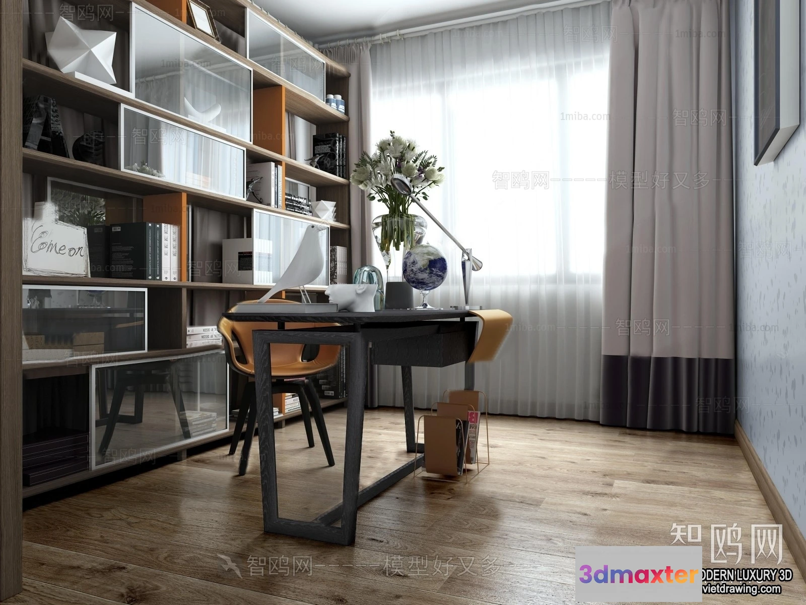 3D Models / 3D Scenes / Interior / Office Home / Study and Work Space – 3D Interior Scene – Luxury Style – 010 3D Max