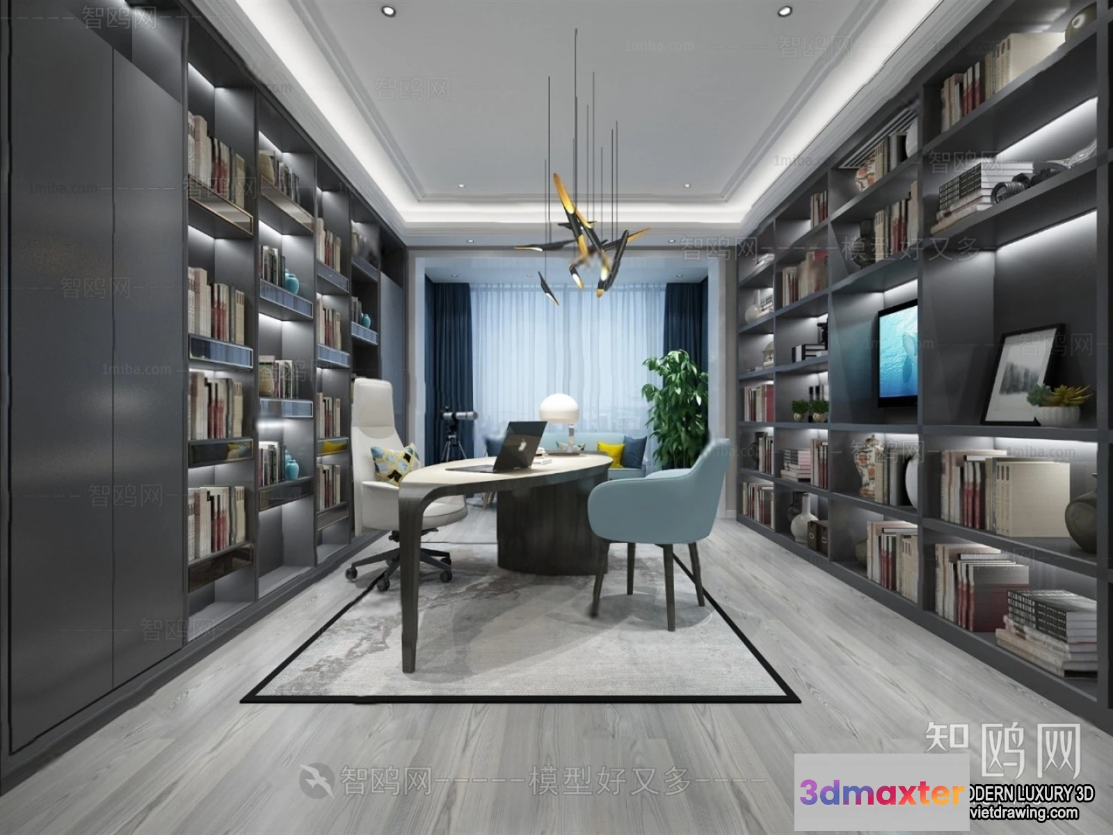 Study and Work Space – 3D Interior Scene – Luxury Style – 014 3D Max
