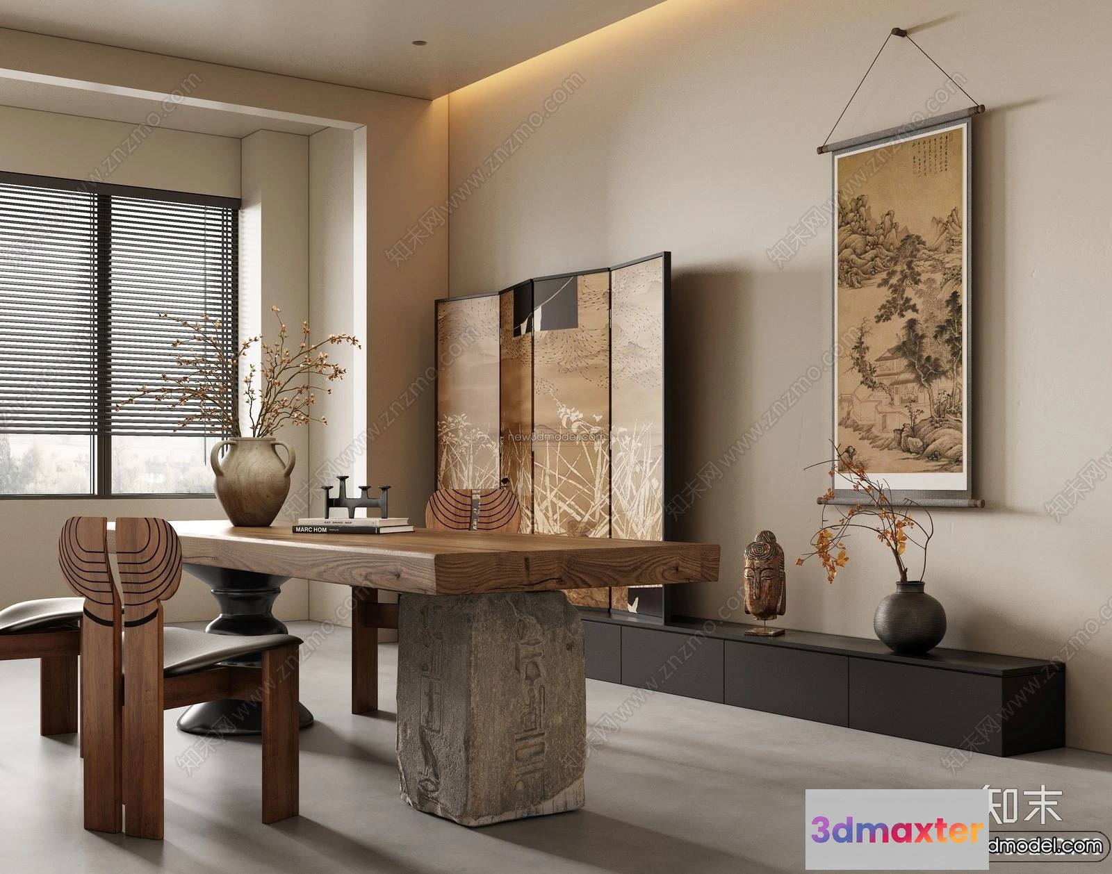 3D Models / 3D Scenes / Interior / Office Home / Study And Work Space 3D Interior Scene Model – Wabi Sabi Style – 001 3D Max