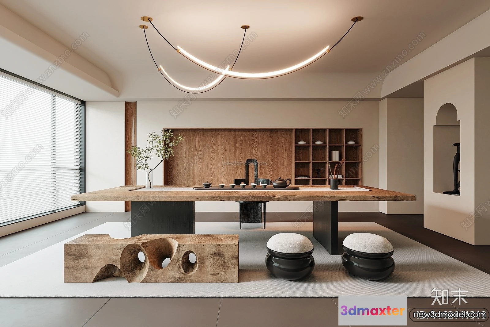 Study And Work Space 3D Interior Scene Model – Wabi Sabi Style – 006 3D Max