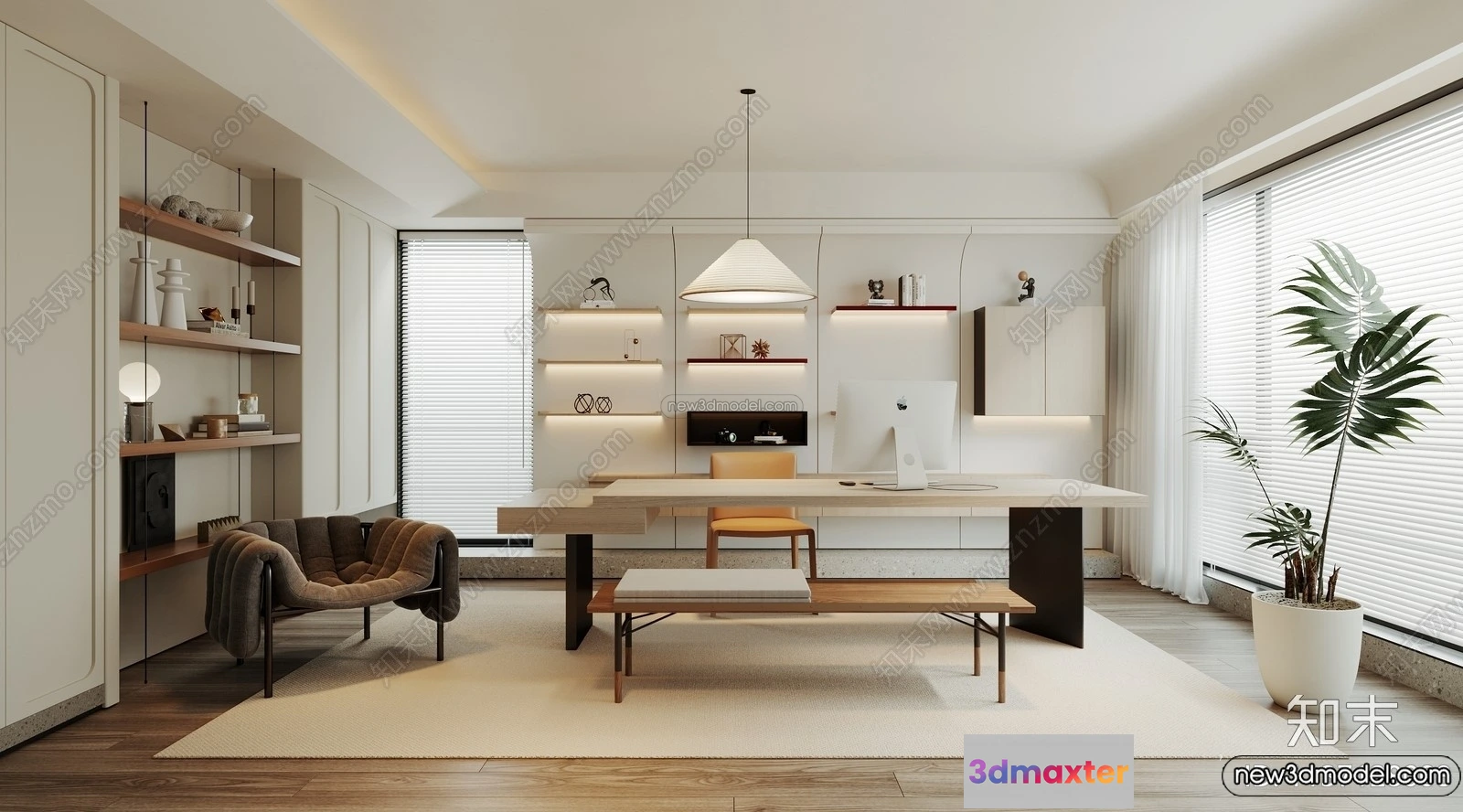 3D Models / 3D Scenes / Interior / Office Home / Study And Work Space 3D Interior Scene Model – Wabi Sabi Style – 011 3D Max