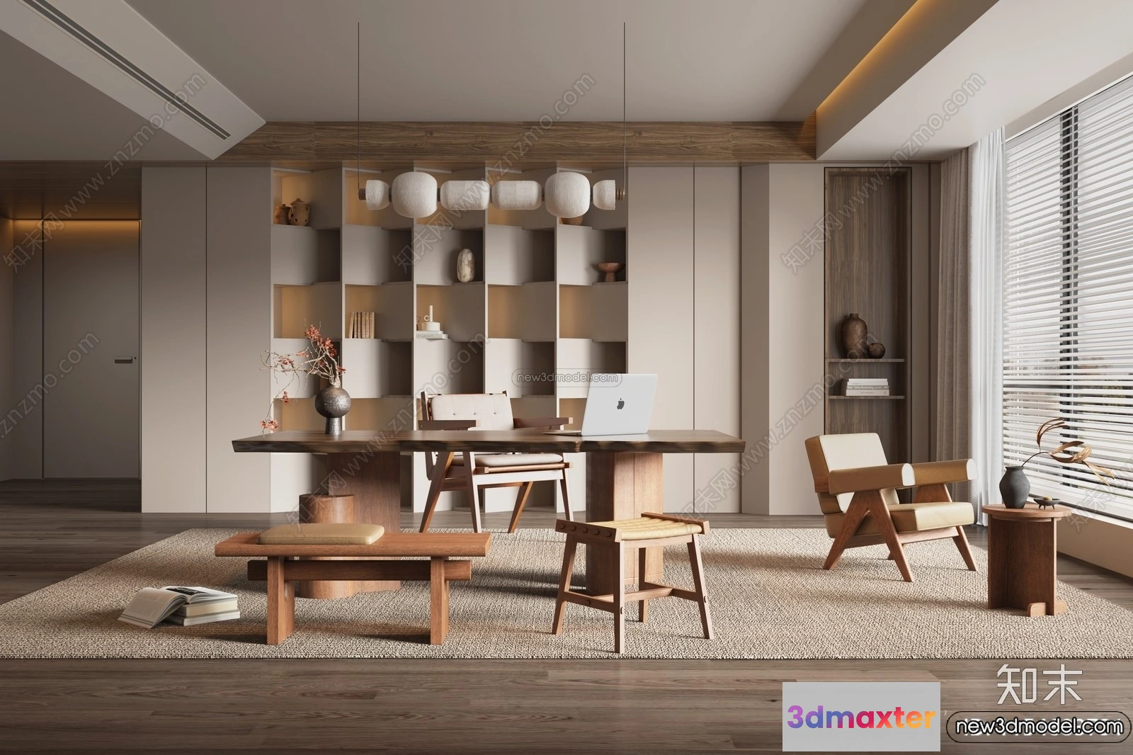 3D Models / 3D Scenes / Interior / Office Home / Study And Work Space 3D Interior Scene Model – Wabi Sabi Style – 019 3D Max
