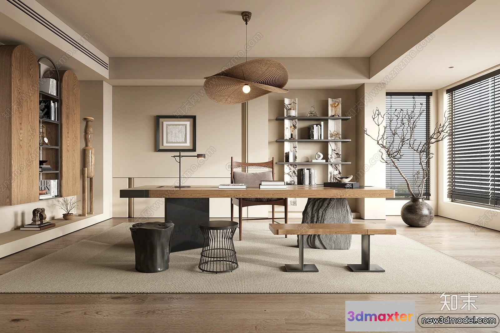 Study And Work Space 3D Interior Scene Model – Wabi Sabi Style – 024 3D Max