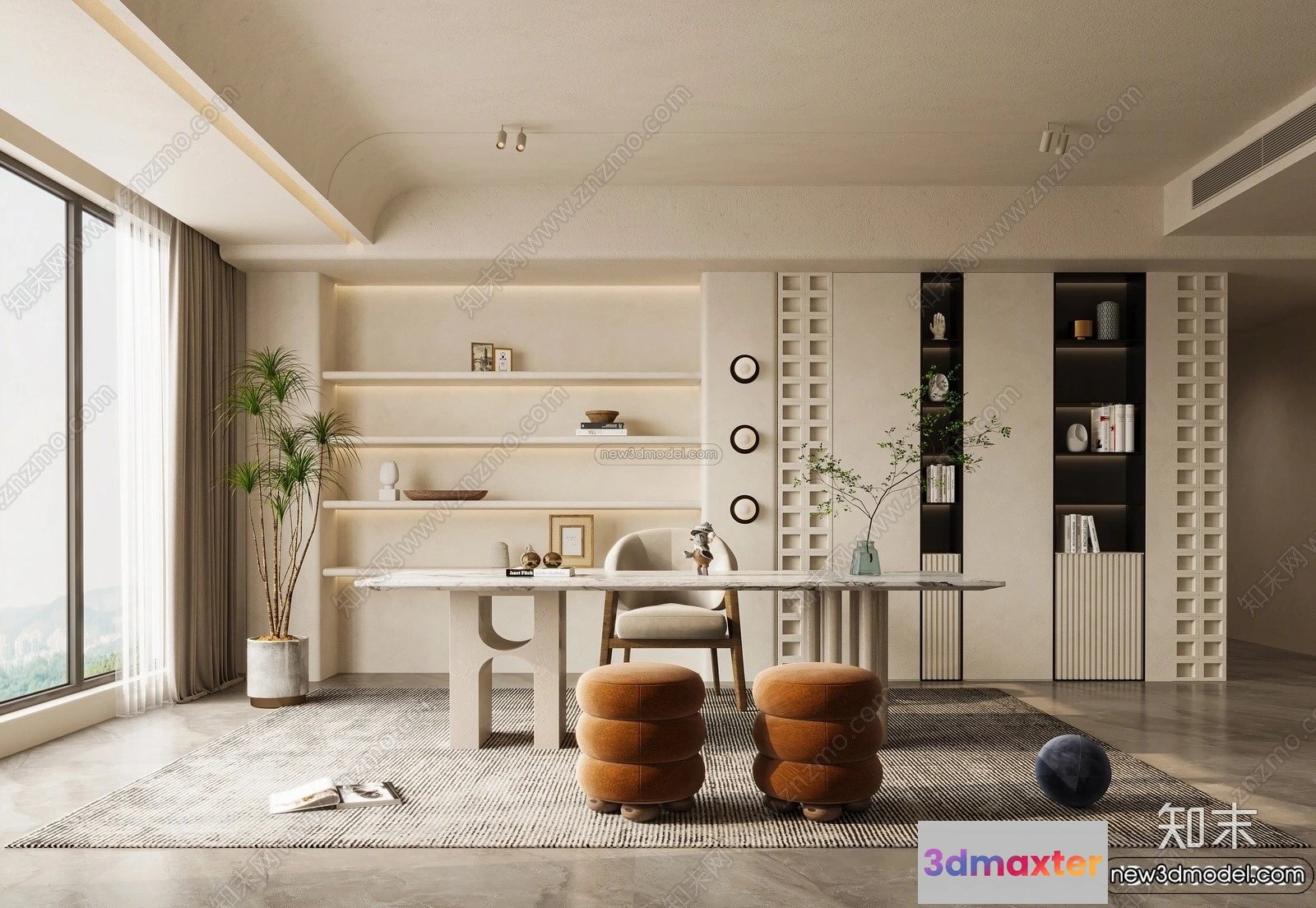 3D Models / 3D Scenes / Interior / Office Home / Study And Work Space 3D Interior Scene Model – Wabi Sabi Style – 031 3D Max