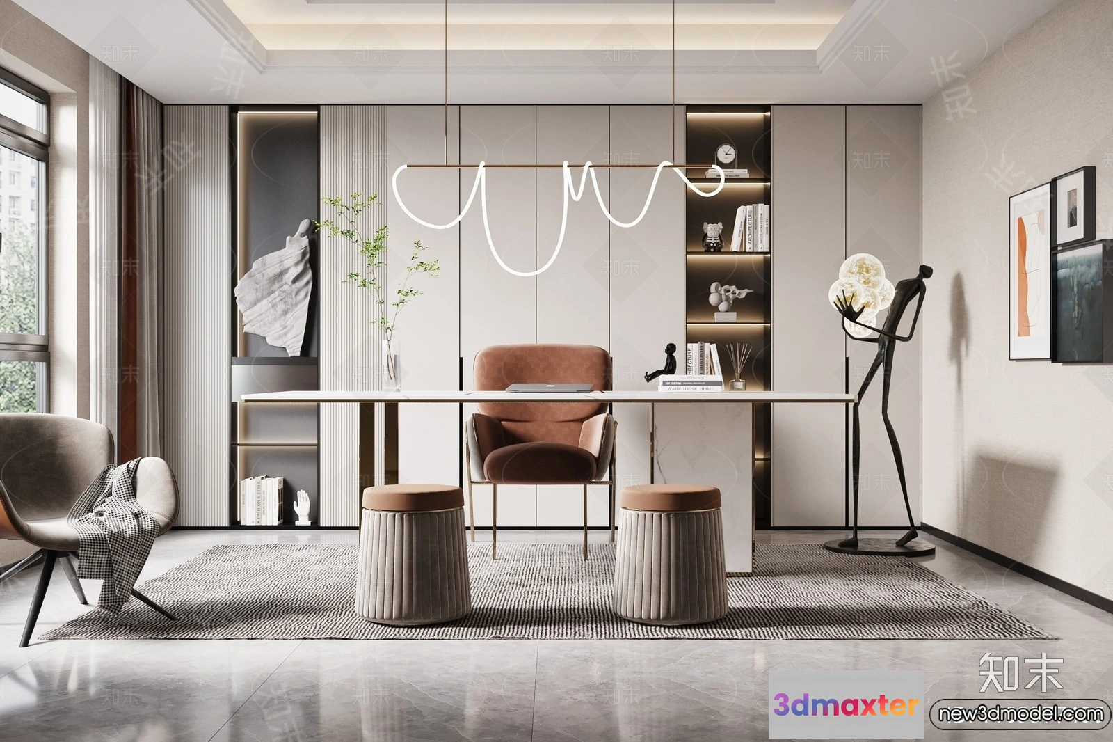 - Name: Study and Work Space – 3D Models – 3D Interior Scene – 036