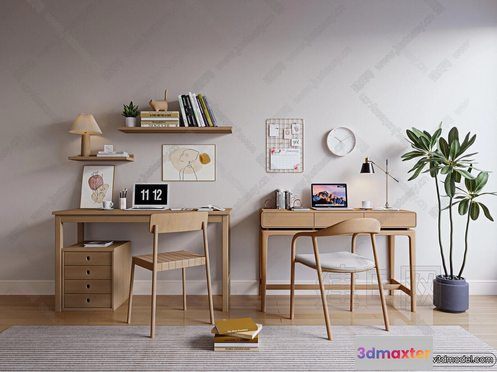 Study and Work Space – 3D Models – 3D Interior Scene – 095 3D Max
