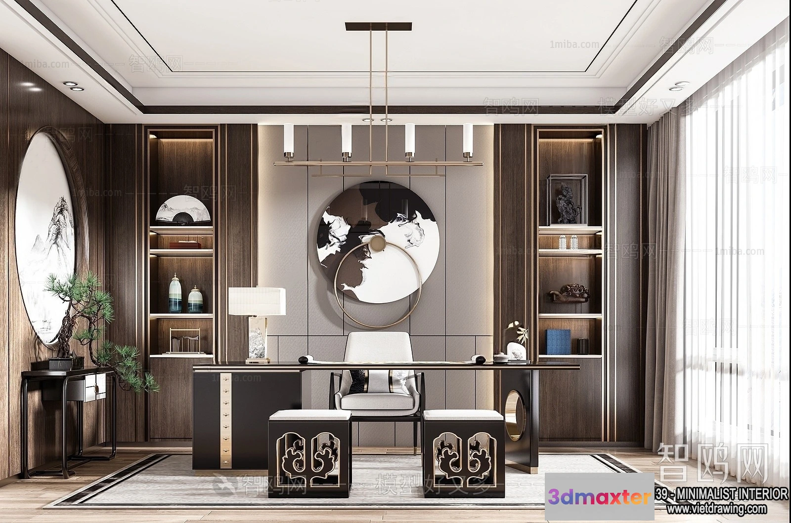 Study and Work Space – Minimalist Style – 3D Interior Scene – 010 3D Max