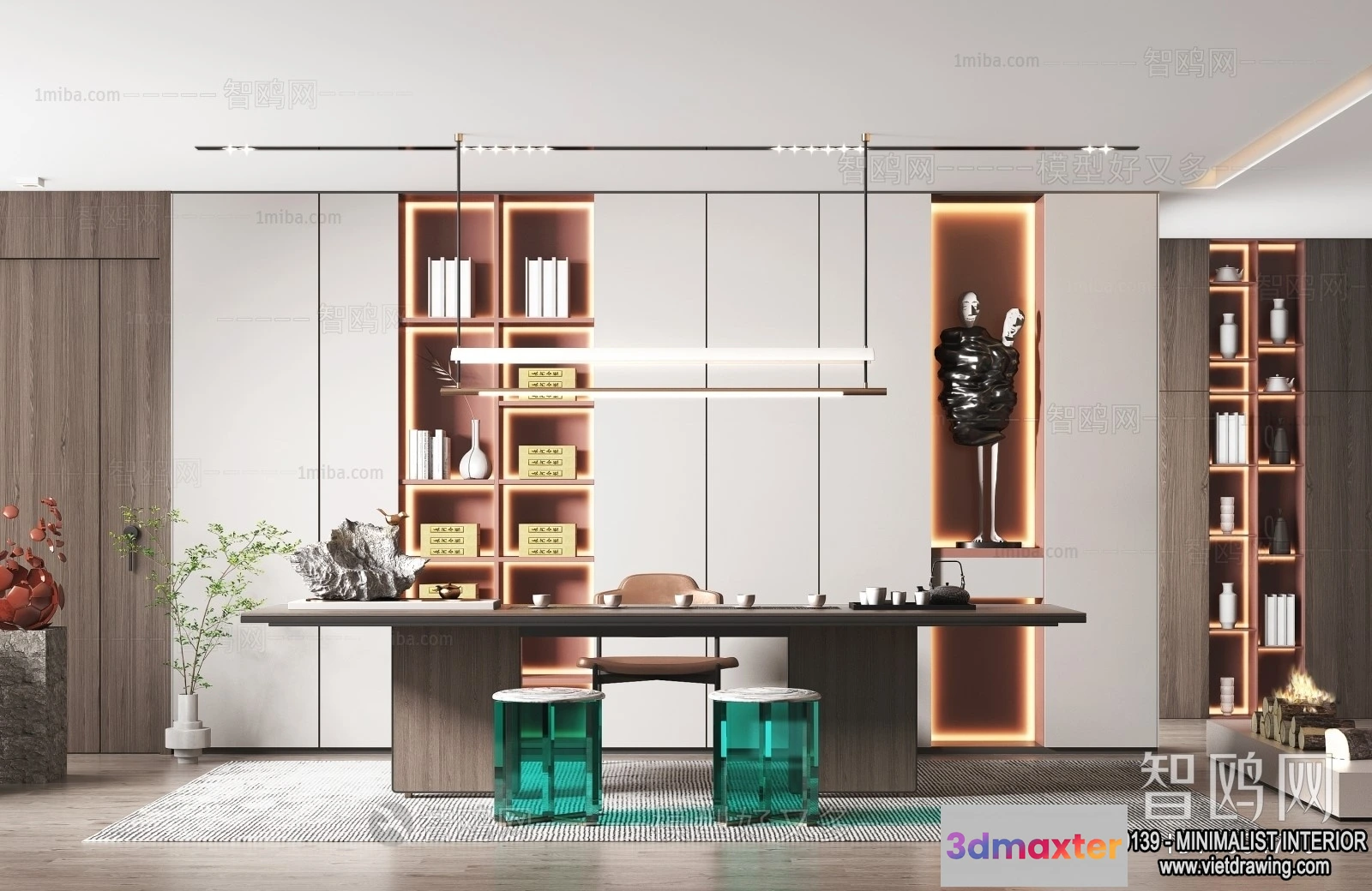 Study and Work Space – Minimalist Style – 3D Interior Scene – 017 3D Max