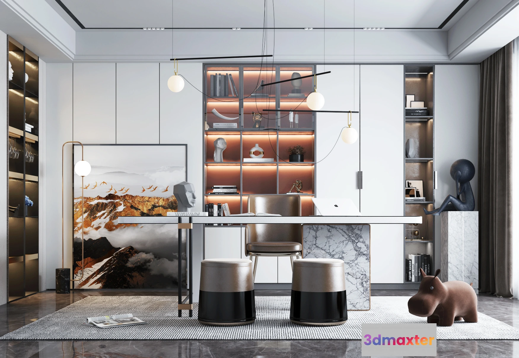 - Name: Study and Work Space – Modern Style 3D Scenes – Interior Design – 008