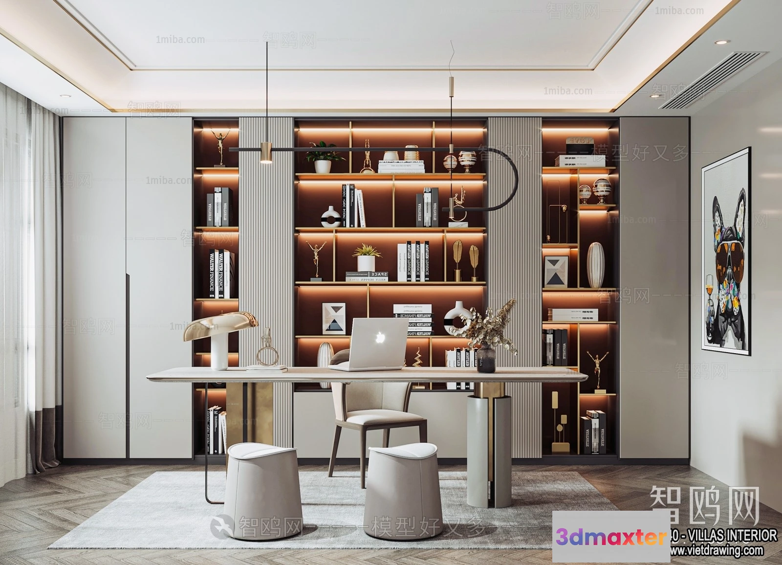 3D Models / 3D Scenes / Interior / Office Home / Study and Work Space – Villas 3D Interior Scene – 3D Models – 009 3D Max