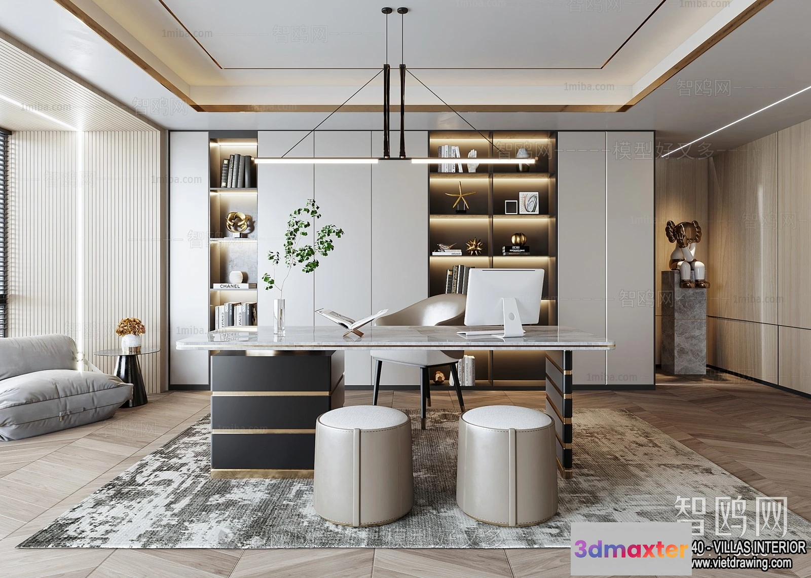 3D Models / 3D Scenes / Interior / Office Home / Study and Work Space – Villas 3D Interior Scene – 3D Models – 010 3D Max