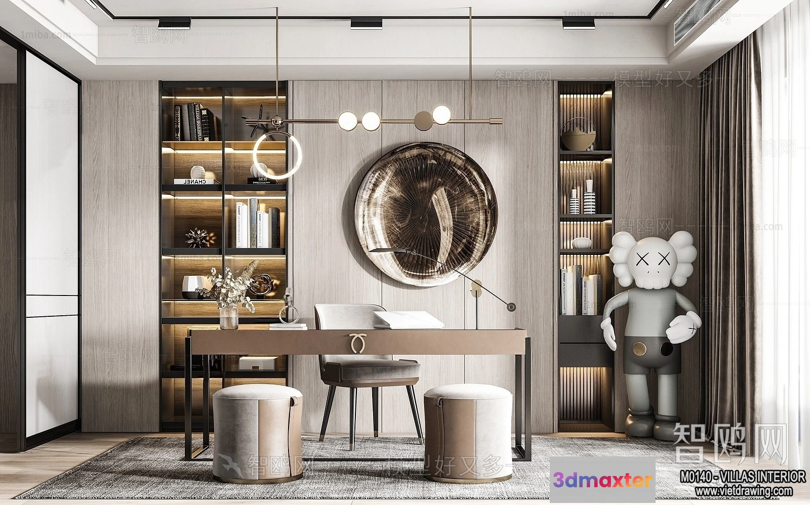 3D Models / 3D Scenes / Interior / Office Home / Study and Work Space – Villas 3D Interior Scene – 3D Models – 019 3D Max