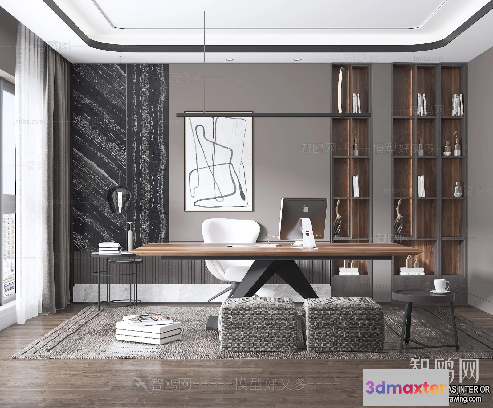 - Name: Study and Work Space – Villas 3D Interior Scene – 3D Models – 037