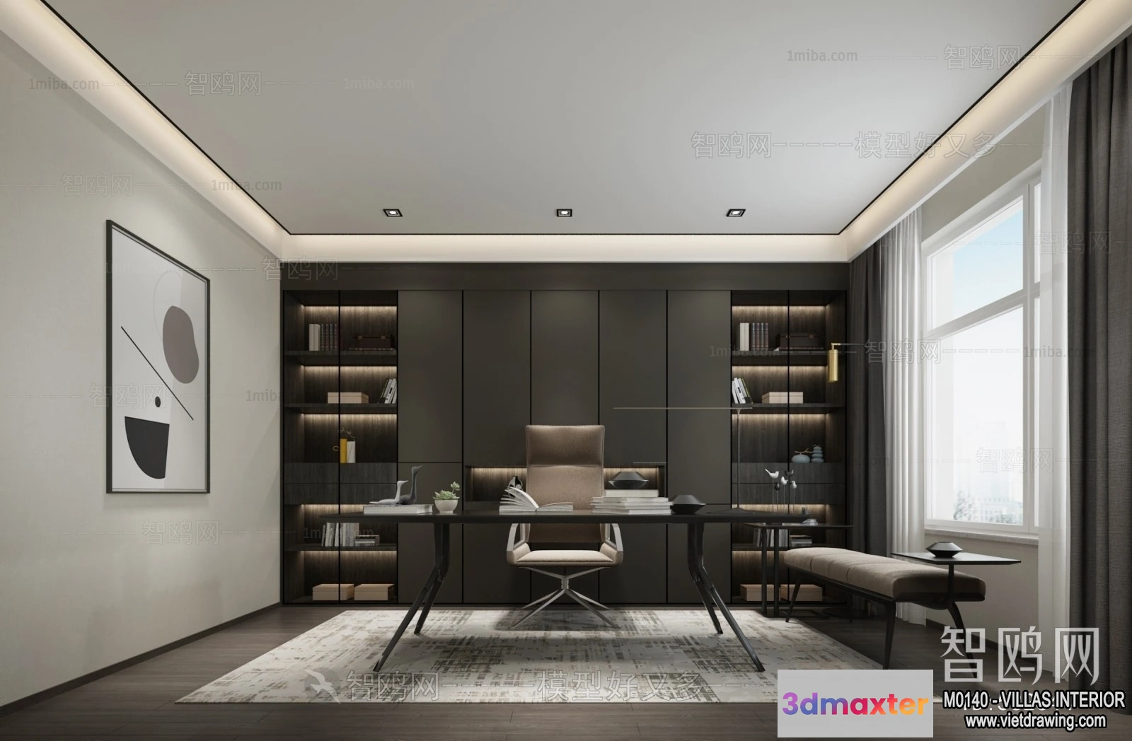 3D Models / 3D Scenes / Interior / Office Home / Study and Work Space – Villas 3D Interior Scene – 3D Models – 038 3D Max