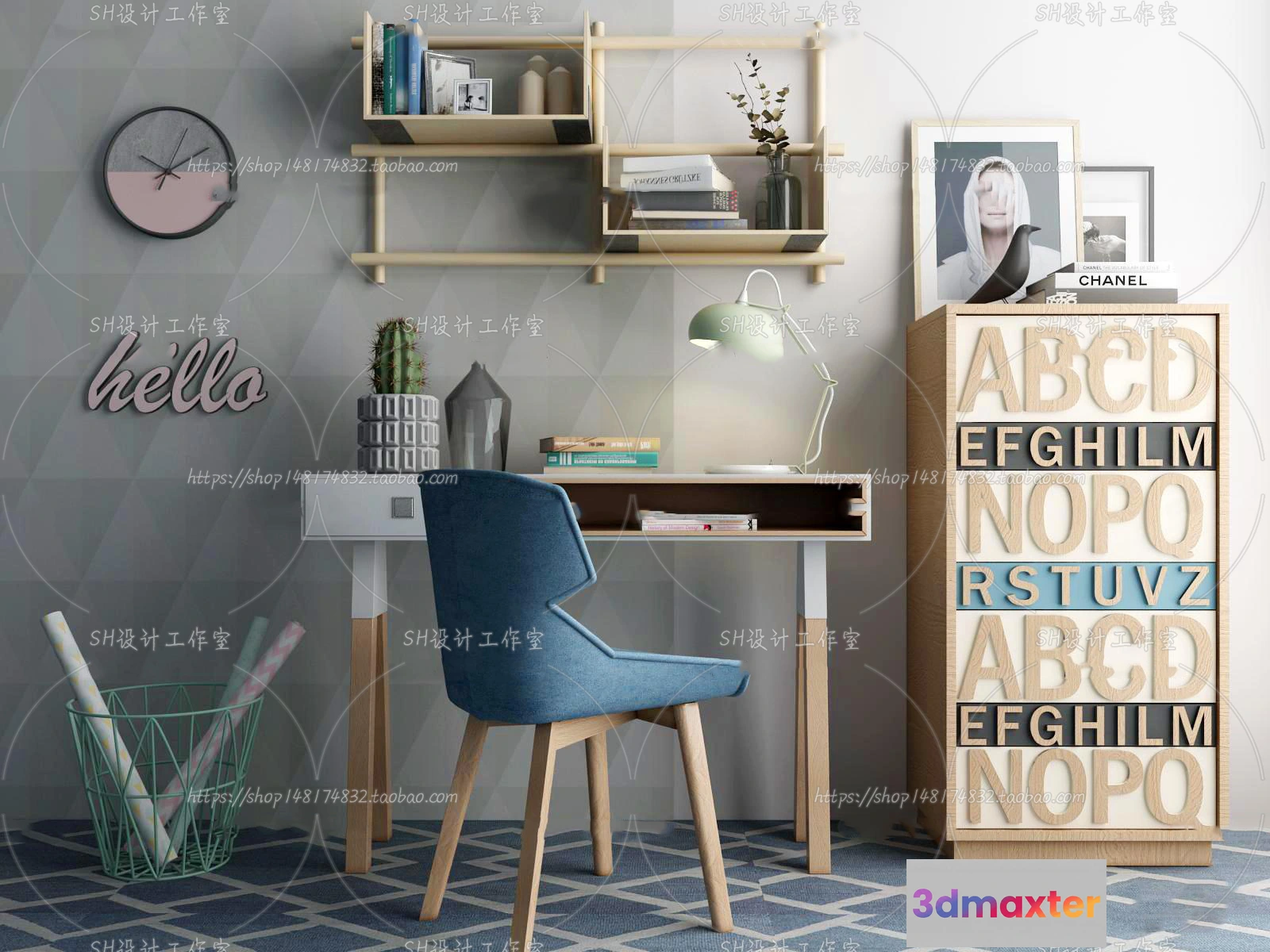3D Models / Furniture / Desk / Study Desk – 3D Models – 2248
